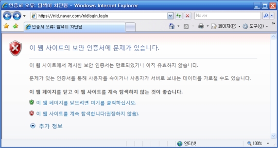 <이 웹사이트의 보안 인증서에 문제가 있습니다.> 오류를 원격으로 수리합니다.