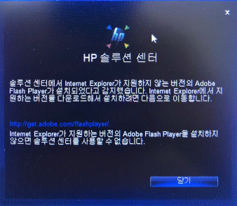 솔루션 센터에서 Internet Explorer가 지원하지 않는 버전의 Adobe Flash Player가 설치되었다고 감지했습니다.