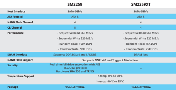 SM2259는 DDR3/DDR3L/DDR4/LPDDR3를 지원하지만 SM2259XT는 DRAM을 지원하지 않습니다.