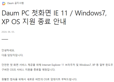 다음 https://daum.net 은 안전한 첫 화면 서비스를 제공하기 위해 윈도 XP와 윈도 7의 지원을 종료합니다.