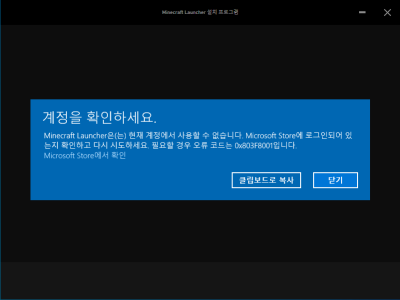 마인크래트트 계정 관련 에러를 원격으로 수리합니다.