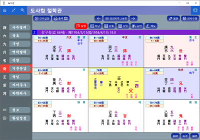 4. 기능: 만세력, 사주명리조식, 육효작괘, 구성포국, 대정수 작괘, 작명, 기문둔갑, 자미두수, 데이터 관리, 인쇄